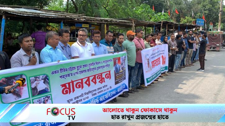 চট্টগ্রামে সাংবাদিকদের ওপর হামলা: জড়িতদের দ্রুত গ্রেপ্তার ও শাস্তির দাবিতে রাজশাহী টেলিভিশন জার্নালিস্ট অ্যাসোসিয়েশনের মানববন্ধন
